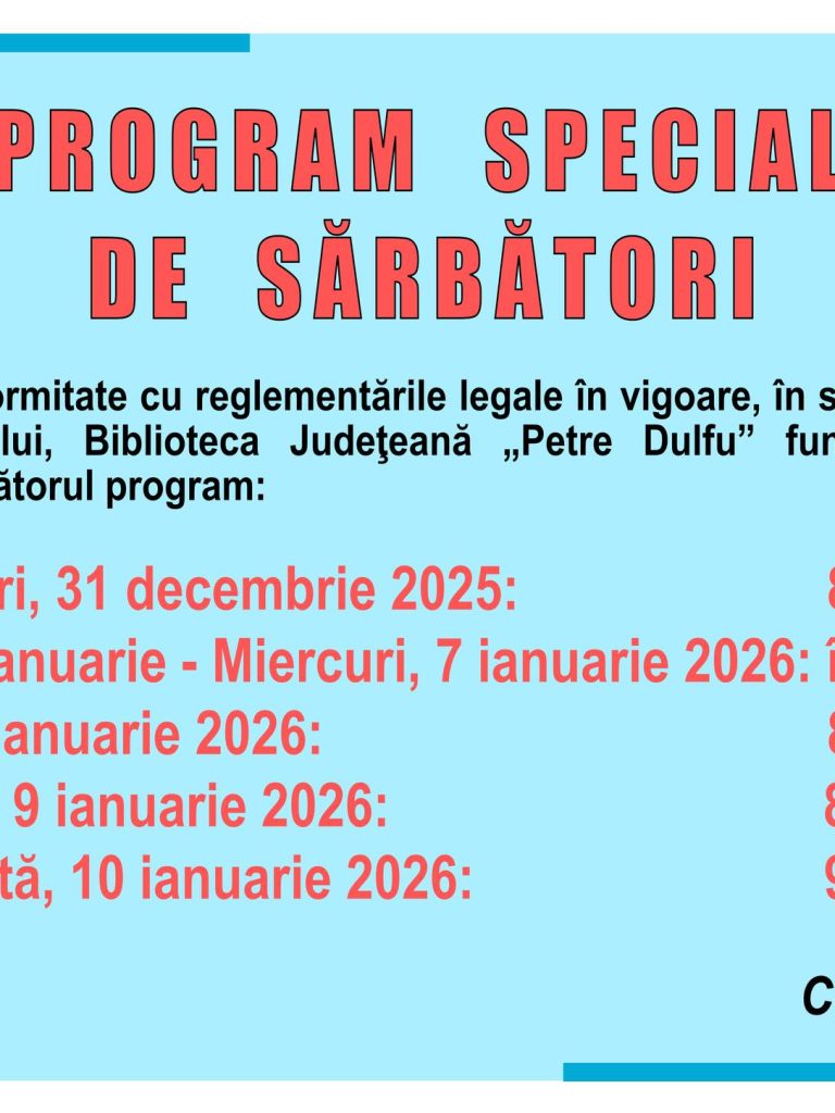 Vineri, 19 decembrie 2025, ora 15.00, Sala de conferințe: Creatorul de conținut Patric Sas în colaborare cu Asociația „Speranță pentru România” organizează un concurs de Kendama pentru copii și adolescenți. Evenimentul este dedicat tuturor pasionaților de kendama – de la începători curioși până la jucători avansați. Fondurile rezultate din înscrierea participanților la concurs vor fi…