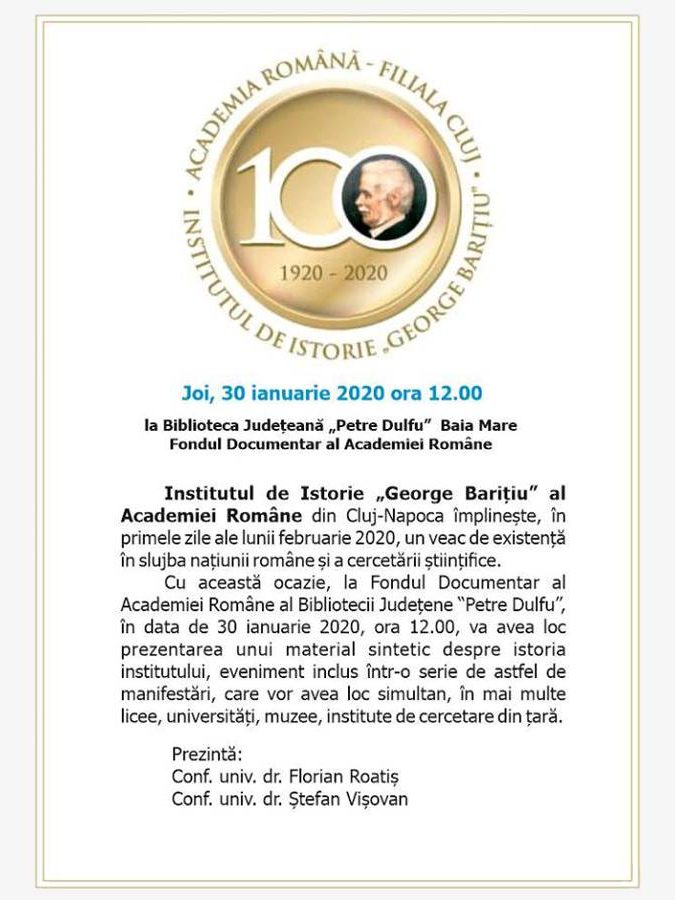 Joi, 30 ianuarie 2020, ora 12. Fondul Documentar al Academiei Române.