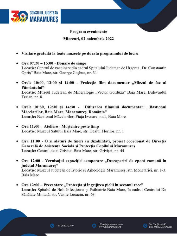 Biblioteca Județeană „Petre Dulfu” marchează cei 30 de ani de activitate ai Consiliului Județean Maramureș prin vernisarea a două expoziții: „30 de cărți – 30 de repere. Consiliul Județean și implicarea în producția de carte din Maramureș”, la Sala de lectură, iar în Holul mare al bibliotecii va fi organizată expoziția realizată în colaborare cu…
