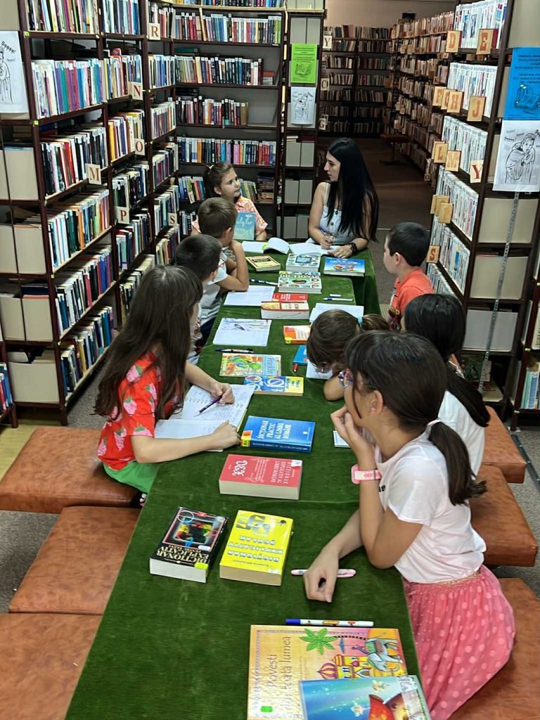 Compartimentul Împrumut carte pentru copii a fost, în data de 19 august, gazda copiilor participanți la „Școala de vară”, coordonată de prof. înv. prim. Diana Dorca Mărginaș. Curioși și dornici de cunoaștere, cei mici au discutat despre bibliotecă, cărți și lectură apoi, s-au dovedit „devoratori de cărți”. Sursa: Serviciul Împrumut carte pentru copii şi…