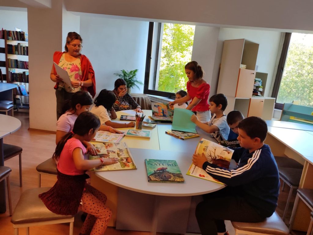 Activități recreative și de vacanță cu copii de la Centrul Multifuncțional Romanii, însoțiți de bibliotecar Alina Opriș și educator Alexandra Zeca.