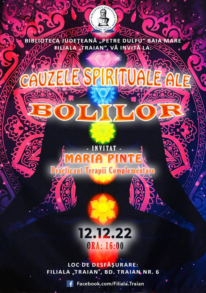 Filiala Traian a Bibliotecii Județene „Petre Dulfu” organizează seminarul informativ „Cauzele spirituale ale bolilor”.