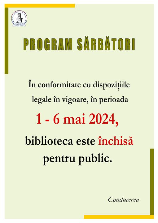 vă anunțăm că în perioada 1 – 6 mai 2024,