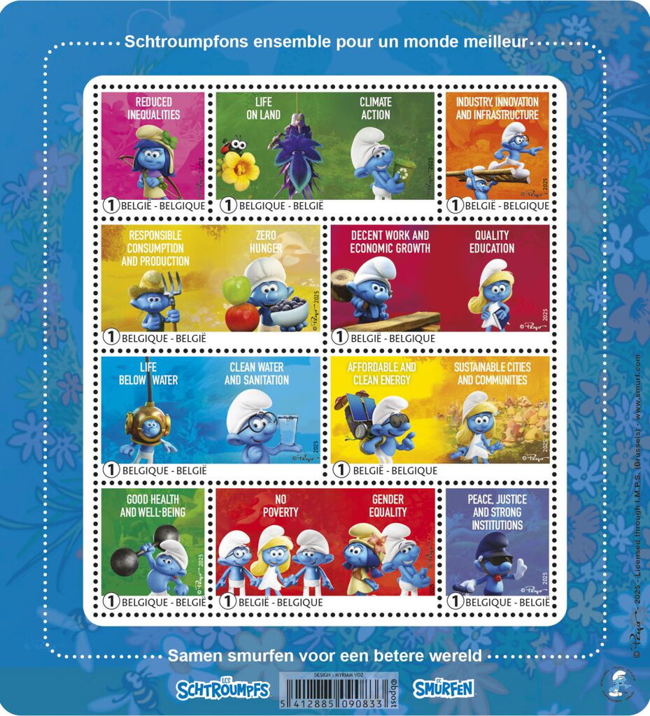 Timbrele reflectă ordinea celor mai importante valori ale poștei și ale lumii în care trăim: „Reducerea inegalităților”; „Viața pe pământ” și „Combaterea schimbărilor climatice”; „Afaceri, inovație și infrastructuri”; „Consumul și producția responsabilă” și „Eradicarea foamei”; „Locuri de muncă decente și creștere economică” și „Educație de calitate”; „Viața sub apă” și „Apă curată și sanitație”; „Energie curată și accesibilă” și „Orașe și comunități durabile”; „Sănătate și bunăstare”; „Eradicarea sărăciei” și „Egalitatea de gen”; „Pace, justiție și instituții puternice”. Cu toate acestea, „Parteneriatele pentru obiective” nu au fost incluse, lăsându-l, dintr-un motiv necunoscut, deoparte.