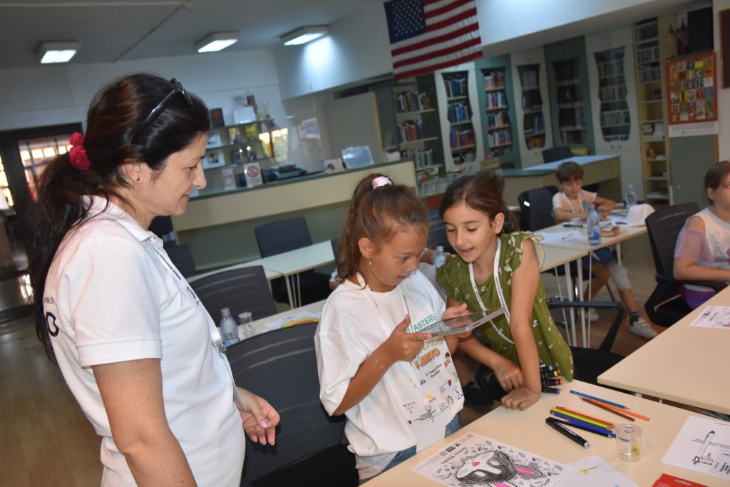 Instantanee de la atelierul de activități STEAM care s-a desfășurat la American Corner, în cadrul Școlii de vară MERITO. Atelierul a fost condus de doamna învățătoare Ioana Baboș.