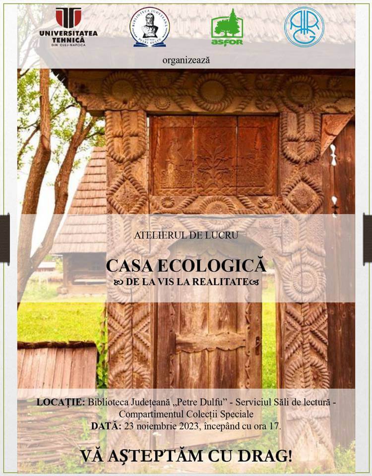 Joi, 23 noiembrie 2023, în cadrul Compartimentului „Colecții Speciale” al Bibliotecii Județene „Petre Dulfu” din Baia Mare, a avut loc atelierul de lucru cu tema „CASA ECOLOGICĂ DE LA VIS LA REALITATE”. Evenimentul a fost organizat de către Asociația Generală de Inginerilor din România – sucursala Maramureș și Centrul Universitar Nord din Baia Mare – Universitatea Tehnică din Cluj-Napoca în colaborare cu Biblioteca Județeană „Petre Dulfu” și Asociația Forestierilor din România – filiala Maramureș.