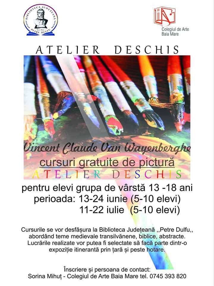 Înscriere şi persoana de contact: Sorina Mihuţ – Colegiul de Arte Baia Mare tel. 0745 393 820