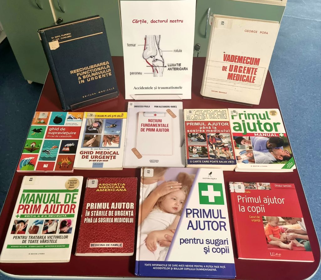 Expoziţia de carte cu tema „Accidentele și traumatismele” cuprinde o selecție de cărţi interesante, care ne oferă informații legate de
