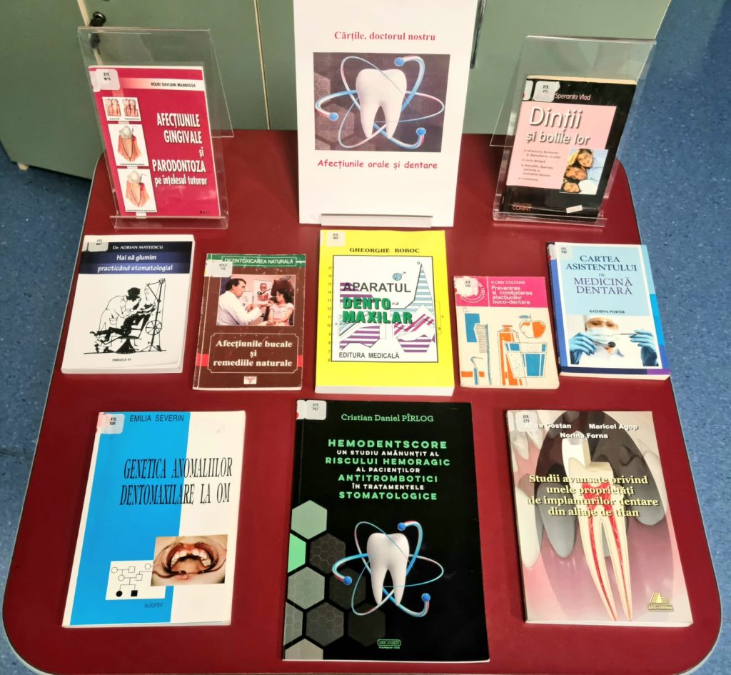 Expoziţie tematică ce cuprinde o selecţie de cărţi ce oferă informații legate de afecțiunile buzelor și limbii, afecțiunile glandelor salivare, leziunile cavității bucale, afecțiunile dinților, afecțiunile articulației temporomandibulare, bolile periodontale, urgențele stomatologice și multe altele.