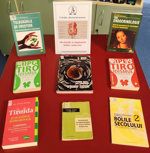 Expoziţia de carte cu tema „Afecțiunile și simptomele bolilor endocrine”, cuprinde o selecție de cărţi interesante, care ne oferă informații legate de afecțiunile glandei pituitare, tiroide și suprarenale, despre diabetul zaharat, hipoglicemie, hiperglicemie, tumorile carcinoide, sindroamele de neoplazii endocrine și multe altele.