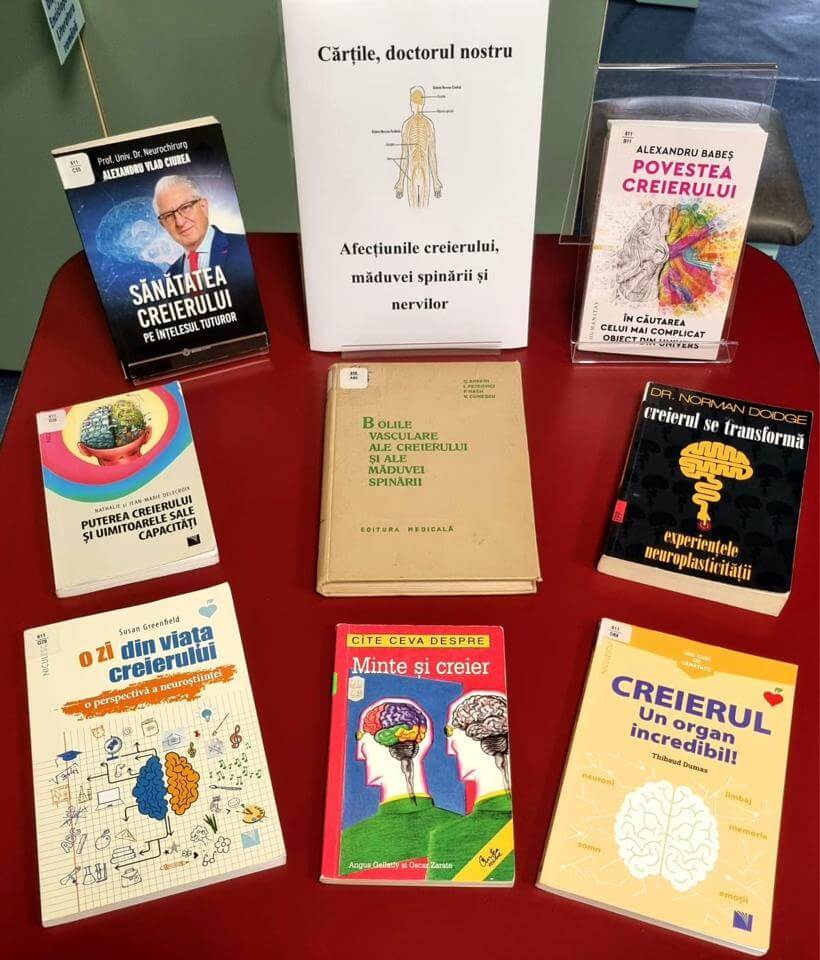 Expoziţia de carte cu tema „Afecțiunile creierului, măduvei spinării și nervilor”, cuprinde o selecție de cărţi interesante, care oferă informații prețioase legate de afecțiunile creierului, măduvei spinării și ale nervilor. Printre cele mai importante afecțiuni amintim: durerea, cefaleea, amețeala, vertijul, tulburările de somn, delirul, demența, coma, crizele epileptice, AVC-ul, traumatismele craniene, tumorile sistemului nervos, infecțiile creierului și ale măduvei spinării, scleroza multiplă și multe altele.
