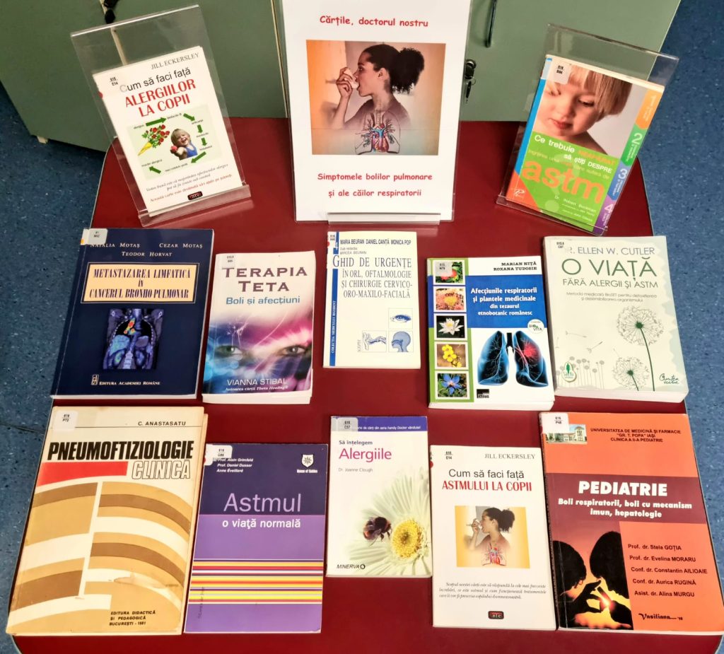 Expoziţie tematică ce cuprinde o selecţie inedită de cărţi, care oferă informații prețioase legate de afecțiunile plămânilor și ale căilor respiratori, dintre care amintim: bronșita, pneumonia, abcesul pulmonar, astmul bronșic, embolismul pulmonar, cancer pulmonar, bolile pulmonare alergice, precum și simptomele lor.