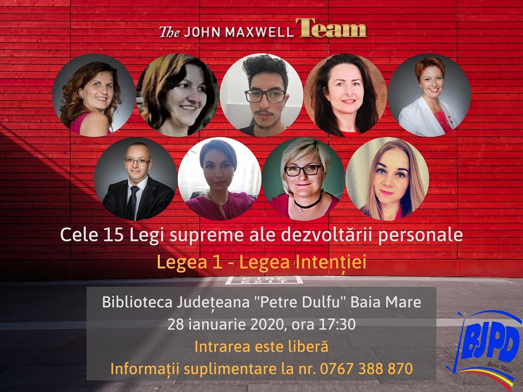 Marți, 28 ianuarie, de la ora 17:30, în Sala de cenaclu “Ion Burnar” va avea loc prima întâlnire în cadrul cursului de dezvoltare personală facilitat de John Maxwell Team Baia Mare, la Biblioteca Județeană.