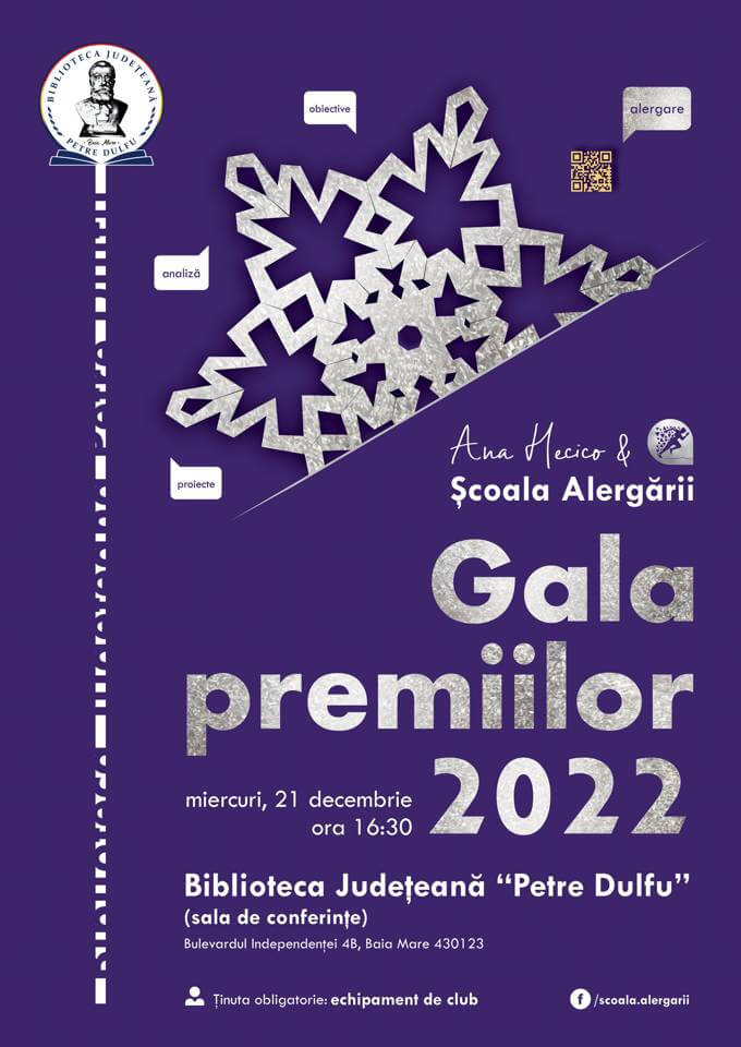 Asociaţia Clubul Sportiv „Școala alergării” Baia Mare în colaborare cu Biblioteca Județeană „Petre Dulfu” organizează Gala pentru premierea sportivilor clubului în anul 2022.