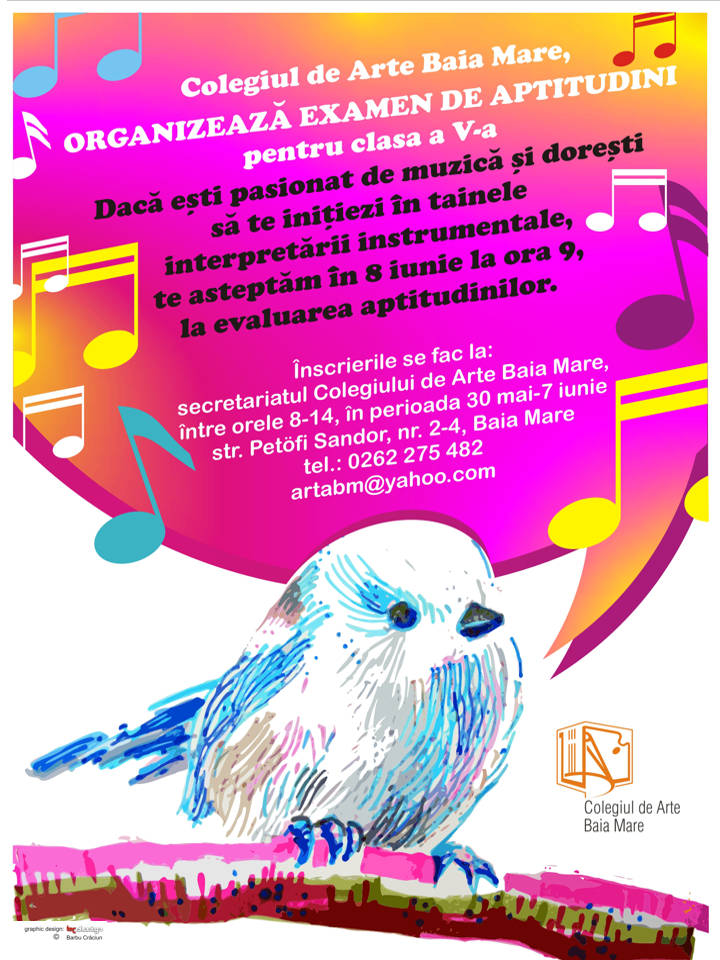 Colegiul de Arte Baia Mare organizează Examen de Aptitudini pentru clasa a V-a.