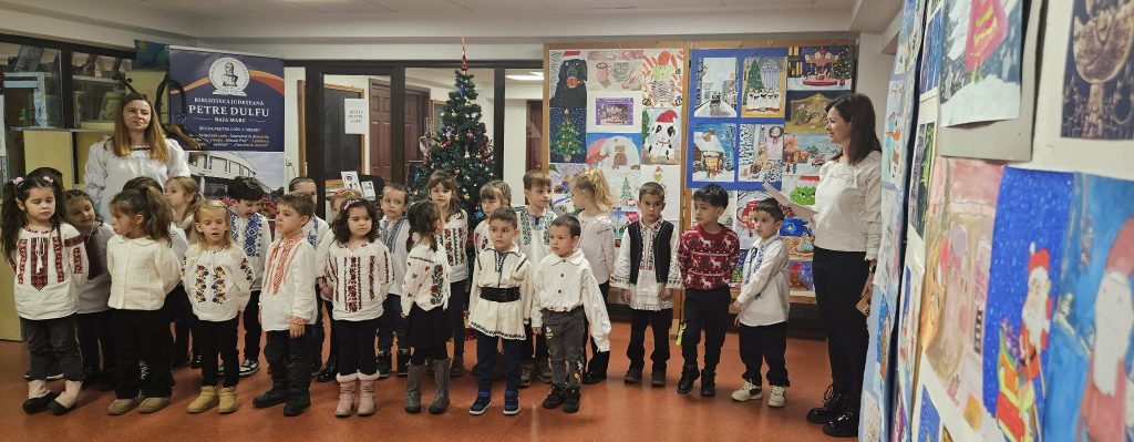 Coordonați de cadrele didactice Lavinia Dorolți și Corina Florian, preșcolarii din grupa mare C de la Școala Gimnazială „Octavian Goga” – Structura Grădinița cu Program Prelungit Nr 4 (dir. prof. Lidia Monica Boje) ne-au bucurat azi, 9 decembrie, cu un grupaj de colinde prezentat la Compartimentul Împrumut carte pentru copii. După colindat, copiii au descoperit cele mai frumoase cărți cu tematică de Crăciun și au fost răsplătiți cu dulciuri.