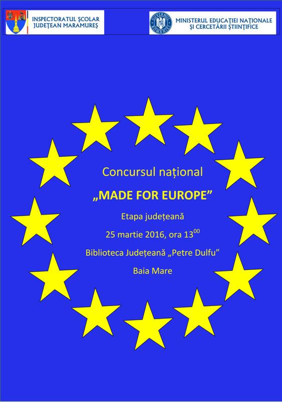 Inspectoratul Şcolar Judeţean Maramureş organizează etapa judeţeană a Concursului naţional „Made for Europe„, ediţia a X-a.