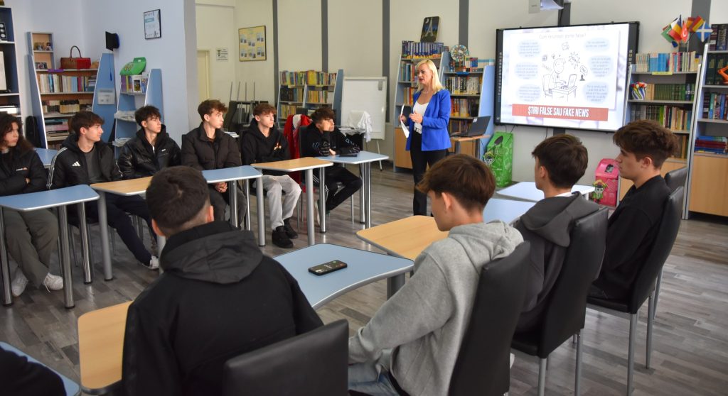 Instantanee de la prezentarea cu tema „Countering Disinformation and Fake News” suținută de jurnalista Mica Svab la Colegiul Tehnic „George Barițiu”.