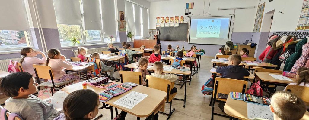 Elevii din clasele pregătitoare A și B (prof. înv. prim. Camelia Onaciu și Adelina Bancoș) de la Școala Gimnazială „Octavian Goga” (dir. prof. Lidia Monica Boje) s-au bucurat de covorul povestitor „Povestea ceasului cu inimă” prezentat cu drag de către bibliotecar Casilda Mare.
