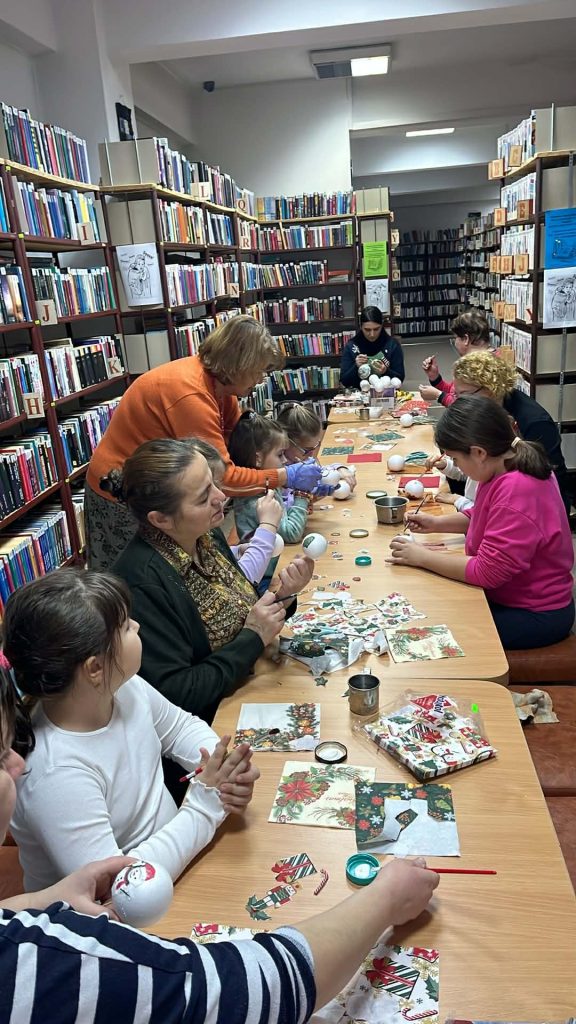 Ieri, 10 decembrie de la ora 16, în cadrul „Atelierului de lucru manual” de la Filiala Traian, am avut o zi specială. Colega noastră Daniela Pop a fost cea care ne-a ghidat pe fiecare cum să ne ornăm propriul glob, pe care apoi să-l punem în bradul de Crăciun.