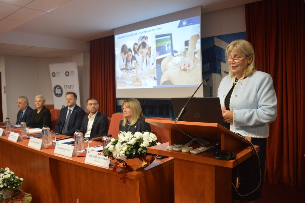 Prezidiul evenimentului a fost format din: Rectorul Universității de Medicină și Farmacie „Iuliu Hațieganu” Cluj-Napoca, prof. univ. dr. Anca Dana Buzoianu, care a făcut o adevărată pledoarie pentru profesia de asistent medical; Prorector prof. univ. dr. Carmen Mihaela Mihu; Prorector prof. univ. dr. Sorin Claudiu Man; Prorector prof. univ. dr. Radu Nicolae Oprean, Prodecan șef lucr. dr. Liliana Elisabeta David, Președintele Consiliului Județean Maramureș – Gabriel Valer Zetea, Prefectul județului Maramureș – Florian Sălăjeanu. Au fost invitați să ia cuvântul: Horia Buhan – Administrator Public al Municipiului Baia Mare, medicul Rareș Pop – managerul Spitalului Județean de Urgență „Dr. Constantin Opriș” Baia Mare.
