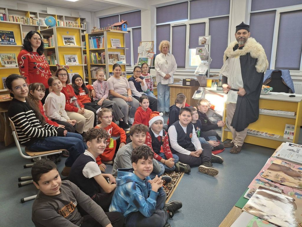 Deși a fost ultima zi de școală, copiii doamnei învățătoare Helga Maghiari, împreună cu doamna bibliotecară Aurelia Holczli, m-au așteptat în clasă cuminți, atenți și dornici să mai asculte o poveste despre trecut.