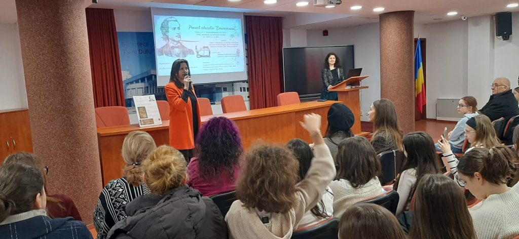 La Biblioteca Județeană „Petre Dulfu”, Compartimentul Împrumut carte pentru copii, la ceas aniversar, Școala Gimnazială ,,Nicolae Iorga”, reprezentată de director prof. Codruța Cozma și dir. adj. prof. Beata Balint, a coordonat implementarea proiectului educativ județean ,,Eminesciana…”, ediția a IV-a, la inițiativa catedrei de limba și literatura română, reprezentată de prof. Codruța Cozma, prof. Elena Hendre, Laura Herman, prof. Corina Rus, prof. Ioana Naghi, prof. Adela Nechita și bibliotecar Titiana Tomoiagă.