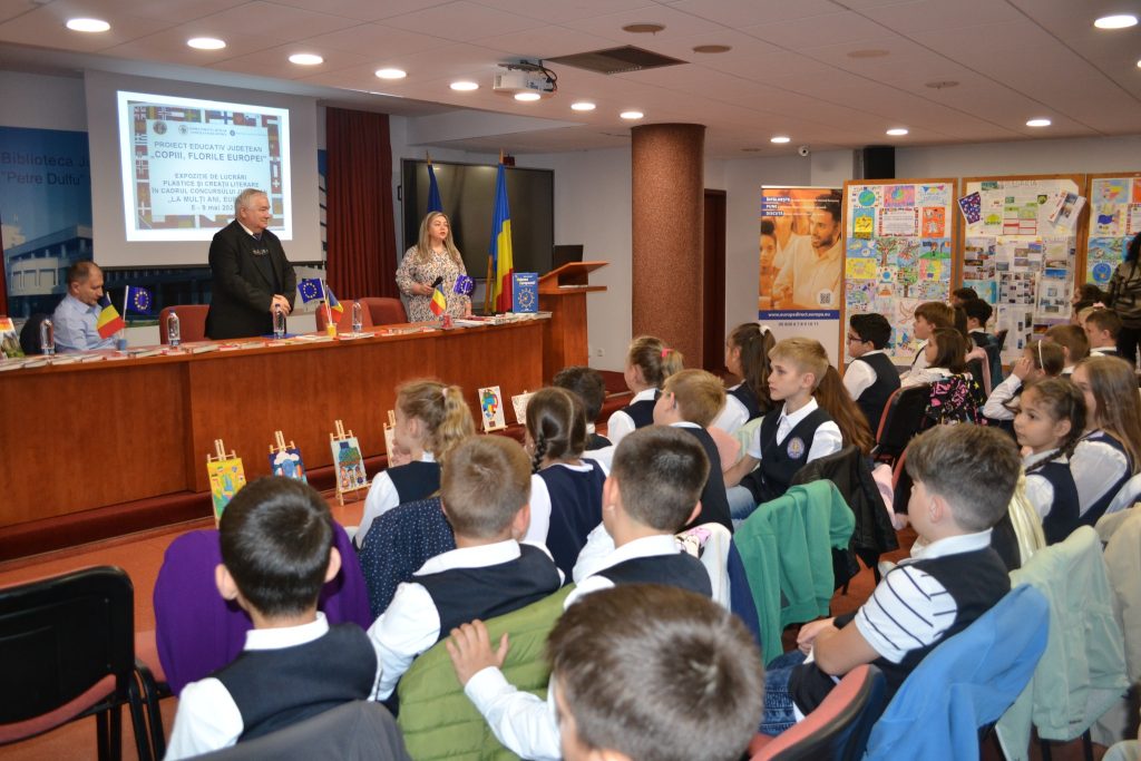 În perioada 7-24 mai 2025, Biblioteca Județeană „Petre Dulfu” găzduiește expoziția „La mulți ani, Europa!”, care face parte din Proiectul educativ județean „Copiii, florile Europei”.