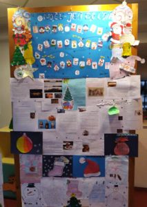 Coordonați de doamnele profesor de limba franceză, Mihaela CUCIUREANU și Camelia MURARU, elevii au scris scrisori adresate lui Moș Crăciun, în limba franceză, au realizat afișe și postere care conțin simboluri specifice sărbătorilor de iarnă în fiecare țară, au elaborat un „ jeu de l’oie” pe această tematică și au întocmit o „carte de rețete” de deserturi special pregătite cu ocazia acestor sărbători.