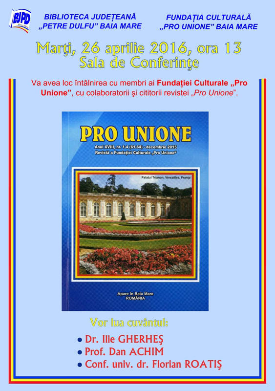 Va avea loc întâlnirea cu membri ai Fundaţiei Culturale „Pro Unione”, cu colaboratorii şi cititorii revistei „Pro Unione”.