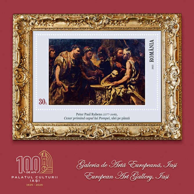 În vara lui 2025, această tăcere a fost spartă de un gest mic, dar cu bătaie lungă: Romfilatelia a lansat emisiunea de mărci poștale „Galeria de Artă Europeană, Iași” (LP #2526), un proiect care aduce în palma colecționarului câteva bijuterii ale artei universale. Pe cele patru timbre din serie, machetate de Mihail Vămășescu și George Ursachi, apar nume sonore: Le Sueur, Philippoteaux, Pietro Liberi și Murillo. Iar colița dantelată – piesa centrală – reproduce dramaticul tablou al lui Rubens, „Cezar primind capul lui Pompei”.