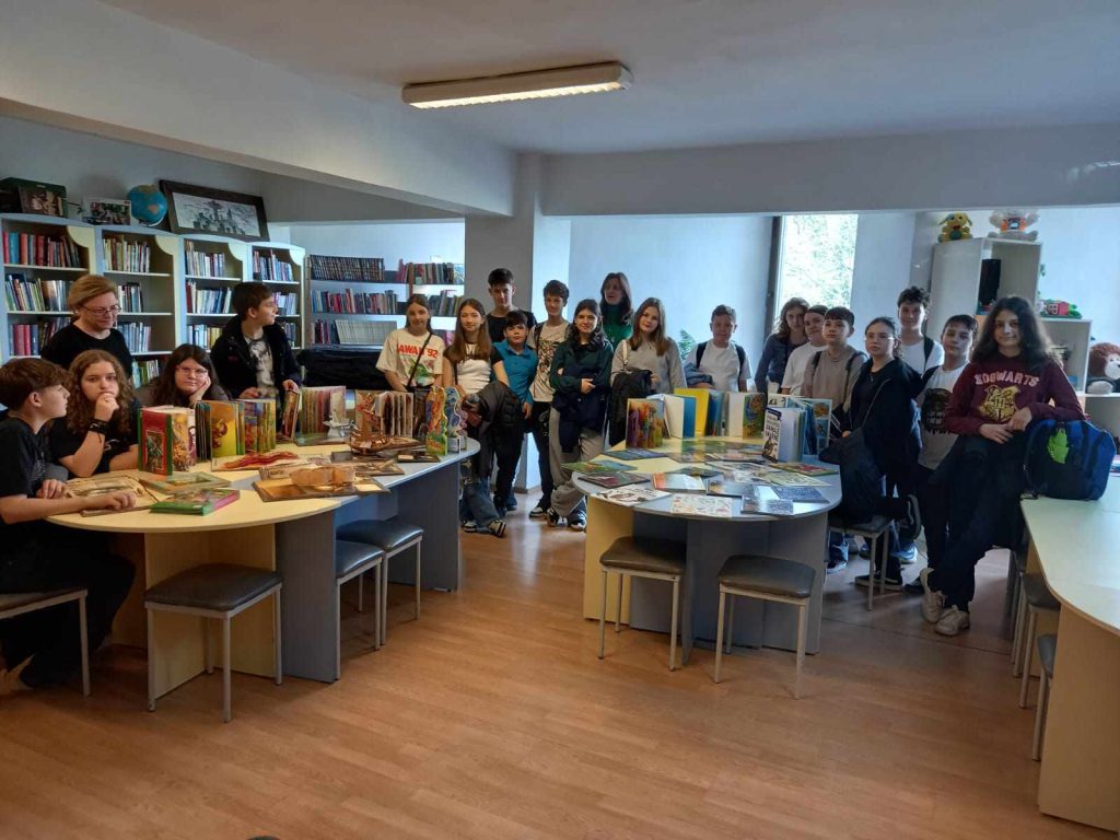 „La pas prin bibliotecă” împreună cu elevii clasei a VI-a A de la Școala Gimnazială „Nicolae Iorga”, însoțiți de dir. prof. dr. Codruța Cozma și bibliotecar Titiana Tomoiagă.