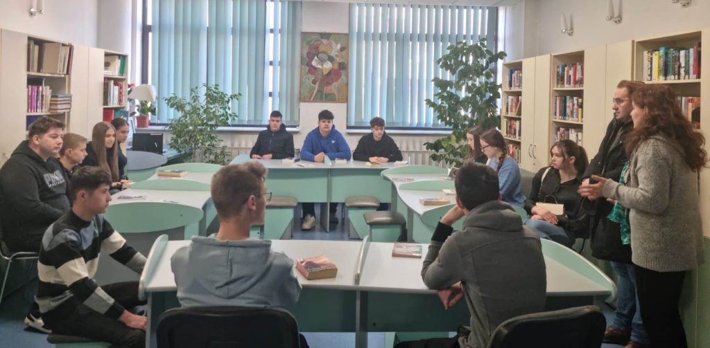 Azi, 20.02.2025, la Compartimentul Împrumut carte pentru adulți, am avut plăcerea de a primi vizita elevilor clasei a IX-a de la Liceul Teologic Penticostal Baia Mare, însoțiți de prof. Bîrle Samuel. Tinerii și-au făcut permis de bibliotecă, după care au făcut un tur al bibliotecii, fiind informați despre toate serviciile oferite utilizatorilor, modul de aranjare al cărților la raft și modalitățile de împrumut, atât de la sediul central cât și de la filialele bibliotecii. Anca Sima, bibliotecar în cadrul Serviciului Împrumut carte pentru adulți, le-a prezentat tinerilor cărți din domeniul teologiei.