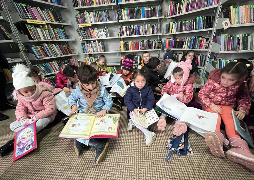 Preșcolarii grupei mari, de la Grădinița cu Program Prelungit „Floare de Colț” (director prof. Anca Goga), însoțiți de doamnele educatoare Tatiana Bonta și Andra Griguța, au participat în data de 23 noiembrie, la prezentarea covorului povestitor „Căsuța din oală’’, realizată de Maria Marton de la Serviciul Împrumut carte pentru copii şi tineret. Bibliotecar Mirela Avram de la Filiala „Ion Şiugariu” le-a pregătit special pentru ei o expoziție de carte „Ne plac poveștile’’. Activitatea a fost coordonată de Corina Şpan şef Serviciu Împrumut carte pentru copii şi tineret. Mulțumim firmei S.C. Habitex România S.R.L. și Infinity Mode S.R.L. pentru frumoasele pernuțele decorative care au înfrumusețat filiala!