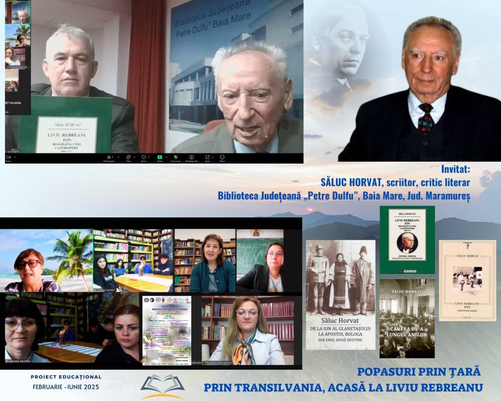 Luni, 17 martie 2025, de la ora 12.00, la inițiativa unor profesori inimoși din cadrul Colegiului Economic „Viilor”, București, sector, 5, Biblioteca Metropolitană București – filiala „Ienăchiță Văcărescu”, Casa Memorială „Liviu și Fanny Rebreanu”, București și Asociația Culturală „Arta Sonoră” București, în parteneriat cu Biblioteca Județeană „Petre Dulfu” Baia Mare, Primăria și Biblioteca Orășenească Vișeu de Sus, Muzeul memorial „Liviu Rebreanu” Năsăud, județul Bistrița-Năsăud, a avut loc, în sistem online, deschiderea oficială a proiectului cultural, educațional cu caracter național, destinat elevilor: „Popasuri prin țară, în Transilvania, acasă la Liviu Rebreanu” – itinerar literar, cultural-istoric, geografic, turistic și gastronomic în zona Maramureșului.