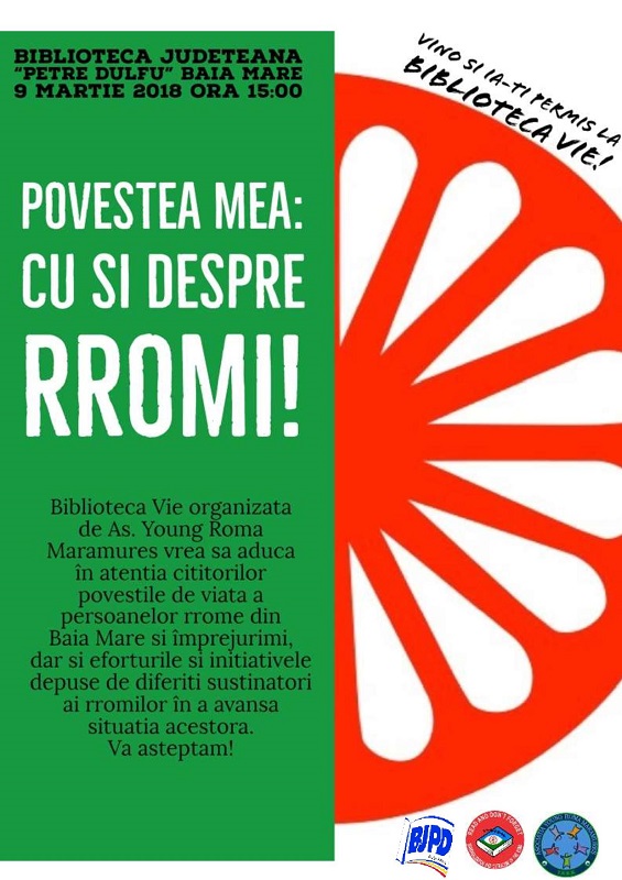 Asociaţia Young Roma Maramureş organizează acţiunea BIBLIOTECA VIE în Baia Mare, în data de 9 Martie 2018, de la ora 15, la Biblioteca Judeţeană “Petre Dulfu”.