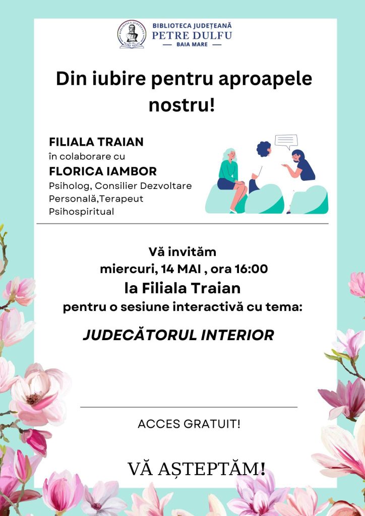 Vă așteptăm miercuri, de la ora 16, la o nouă discuție pe teme de psihologie împreună cu Florica Iambor.
