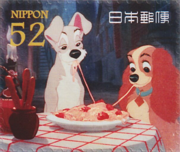 De exemplu, Statele Unite au emis un set de timbre Disney în 2006 pentru a comemora 50 de ani de la lansarea filmului. Timbrele prezentau imagini iconice din film, inclusiv celebra scenă a cinei romantice cu spaghete, care este una dintre cele mai recunoscute scene din istoria animației.