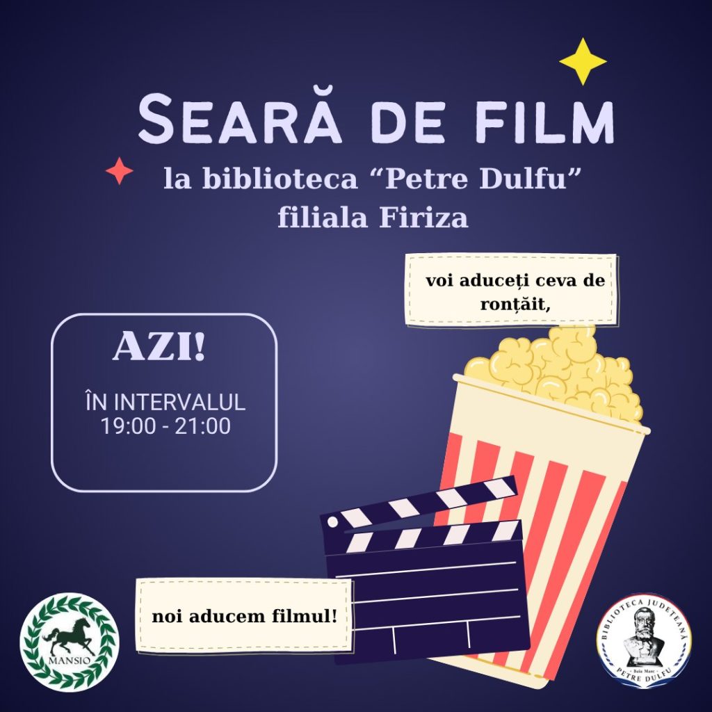 Astăzi, între 19:00 și 21:00, vă așteptăm cu drag la o seară specială de filme pentru cei mici, chiar la biblioteca din Firiza!