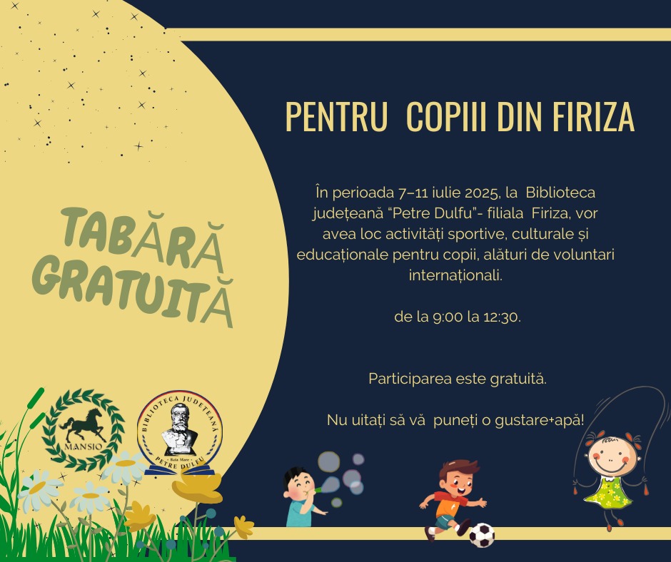 Vă invităm cu drag, săptămâna viitoare, la o tabără gratuită organizată la Biblioteca din Firiza!