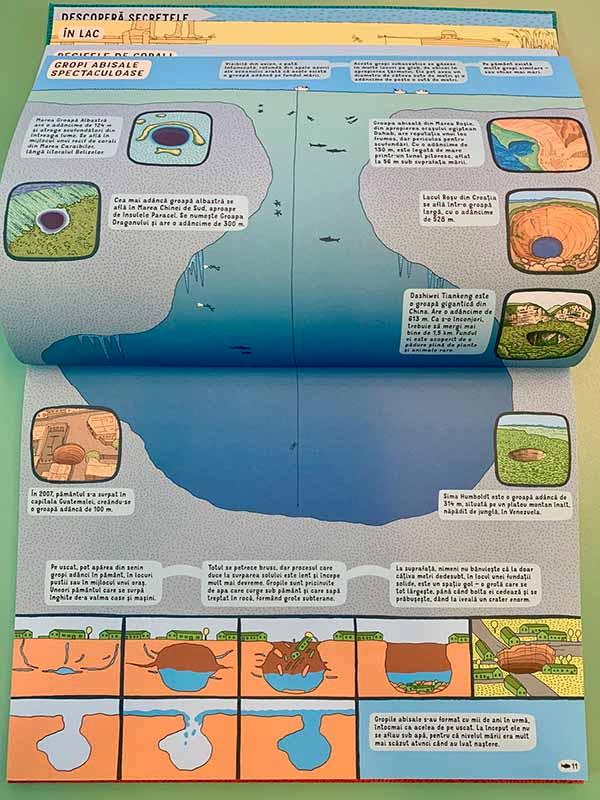 Dar și în partea „Sub Pământ” găsim informații utile chiar despre apa subterană: despre apa din peșteri, apa fierbinte din gheizere și sistemele de canalizare.