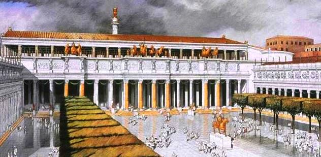 Reproducere digitală după Basilica Ulpia din Forumul lui Traian, care dispunea de o renumită bibliotecă