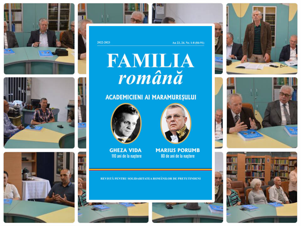 Vorbind despre revista „Familia română”, dr. Teodor Ardelean a menționat că acest număr are un spațiu generos dedicat legăturii Maramureșului cu Academia Română, redând o parte dintre evenimentele prin care acest colț de țară își apreciază personalitățile care au făcut și continuă să facă și în prezent istorie în domeniul culturii și spiritualității naționale, respectiv, acad. Gheza Vida– celebrul sculptor care a veșnicit în piatră și în lemn crâmpeie de mare răsunet din istoria României și acad. Marius Porumb – renumit istoric și critic de artă.