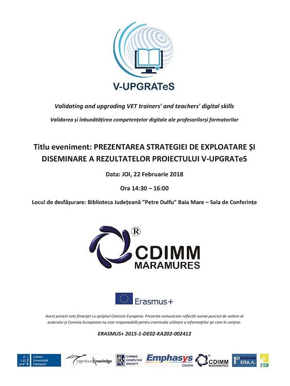 9 Martie 2018, ora 15 –  Sala de conferinţe