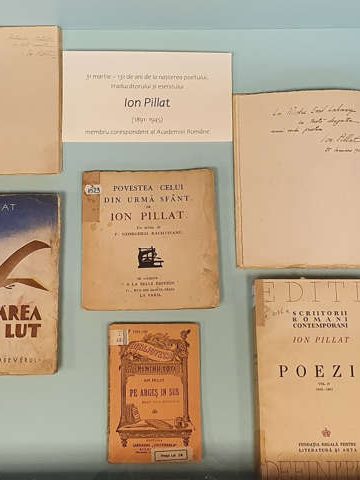Cu această ocazie sunt expuse cartea de debut „Povestea celui din urmă sfânt”, apărută la Paris în 1912 și două cărți cu autograful autorului: „Iubita de zăpadă”, București, 1915 cu dedicația: „Prietenului Stratulat cu toată amiciția. Ion Pillat. 1920.” și „Scutul Minervei”, București, 1933, care are pe pagina de gardă dedicația: „Lui Nicolae Emil Lahovary cu toată dragostea unui vechi prieten. Ion Pillat. 25 Ianuarie 1934”.
