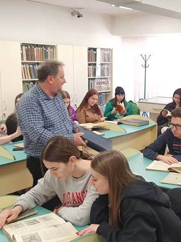 Elevi în vizită de documentare la Compartimentul Colecții Speciale a bibliotecii județene