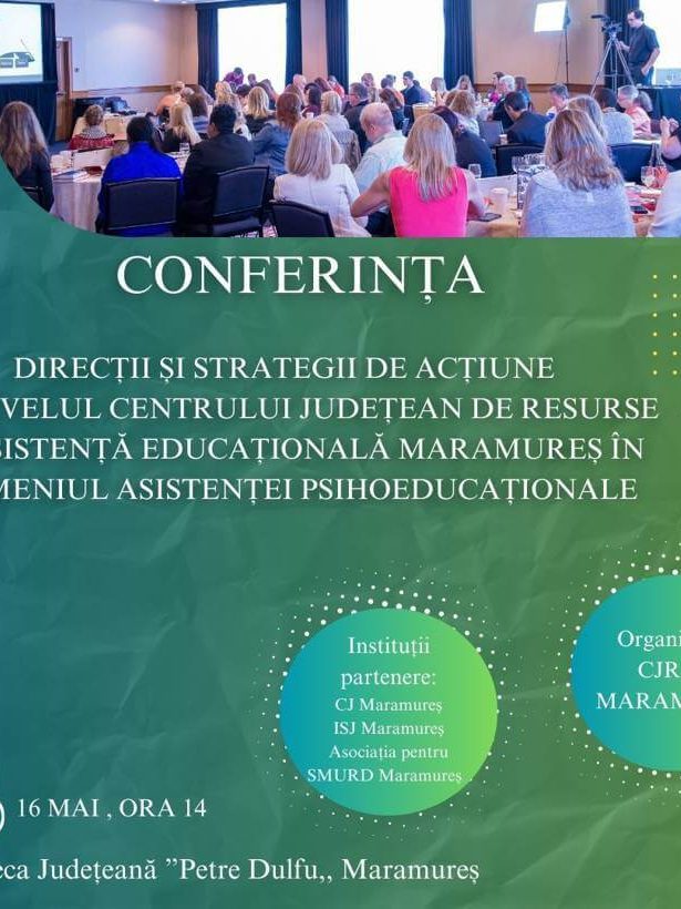 Joi, 16 mai 2024, ora 14.00 – Sala de conferințe: Va avea loc Conferința „Direcții și strategii de acțiune la nivelul Centrului Județean de Resurse și Asistență Educațională Maramureș în domeniul asistenței psihoeducaționale”, eveniment organizat de CJRAE Maramureș, în parteneriat cu Consiliul Județean Maramureș, Inspectoratul Școlar Județean Maramureș. În cadrul acestui eveniment vor participa și…