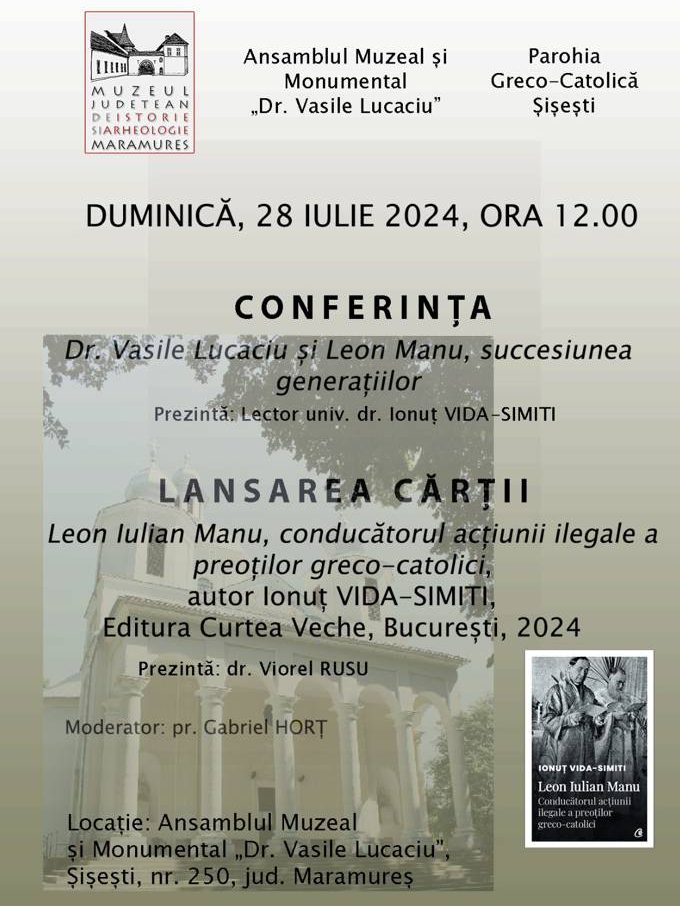 Parohia Greco-Catolică din Șișești vă invită să luați parte la lansarea cărții „Leon Iulian Manu, conducătorul acțiunii ilegale a preoților greco-catolici” și la conferița „Dr. Vasile Lucaciu și Leon Manu, succesiunea generațiilor”, duminică, 28 iulie, ora 12:00. Locație: Ansamblul Muzeal și Monumental „Dr. Vasile Lucaciu” Șișești. Prezintă: lector. univ. dr. Ionuţ Vida-Simiti şi dr. Viorel…
