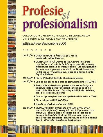 Joi, 8 octombrie 2009, ora 11:00 – Sala de conferinţe
