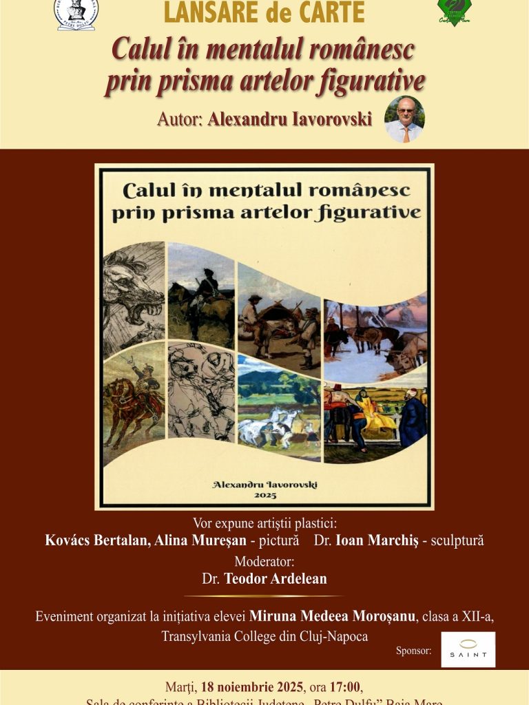 Marți, 18 noiembrie 2025, ora 17.00, Sala de conferințe: Biblioteca Județeană „Petre Dulfu” Baia Mare în colaborare cu Centrul de Echitație și Hipoterapie Curtuiușu Mare organizează, în prezența autorului, lansarea volumului „Calul în mentalul românesc prin prisma artelor figurative”, de Alexandru Iavorovski. Moderator: dr. Teodor Ardelean, director Biblioteca Județeană „Petre Dulfu” Baia Mare. Vor expune…